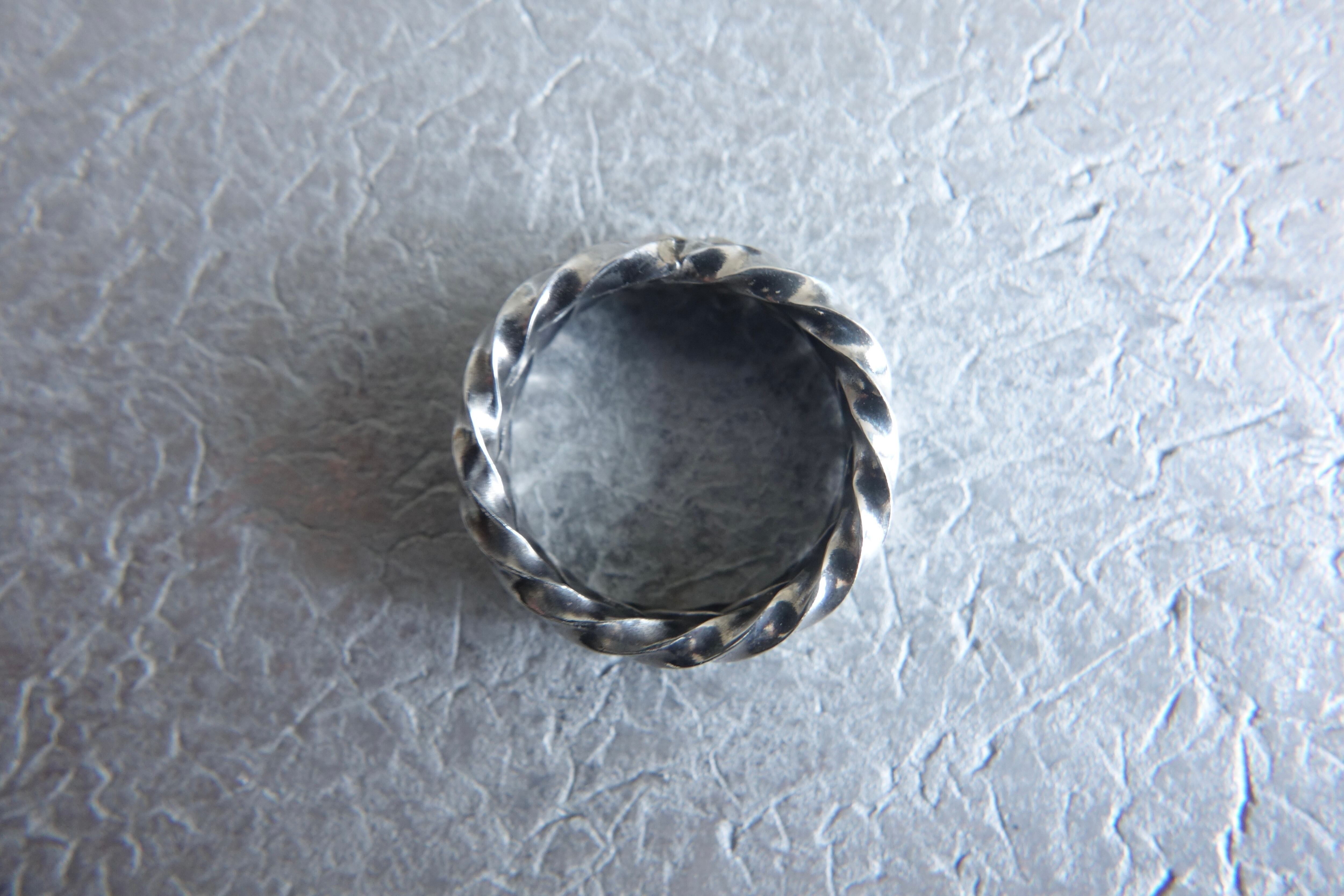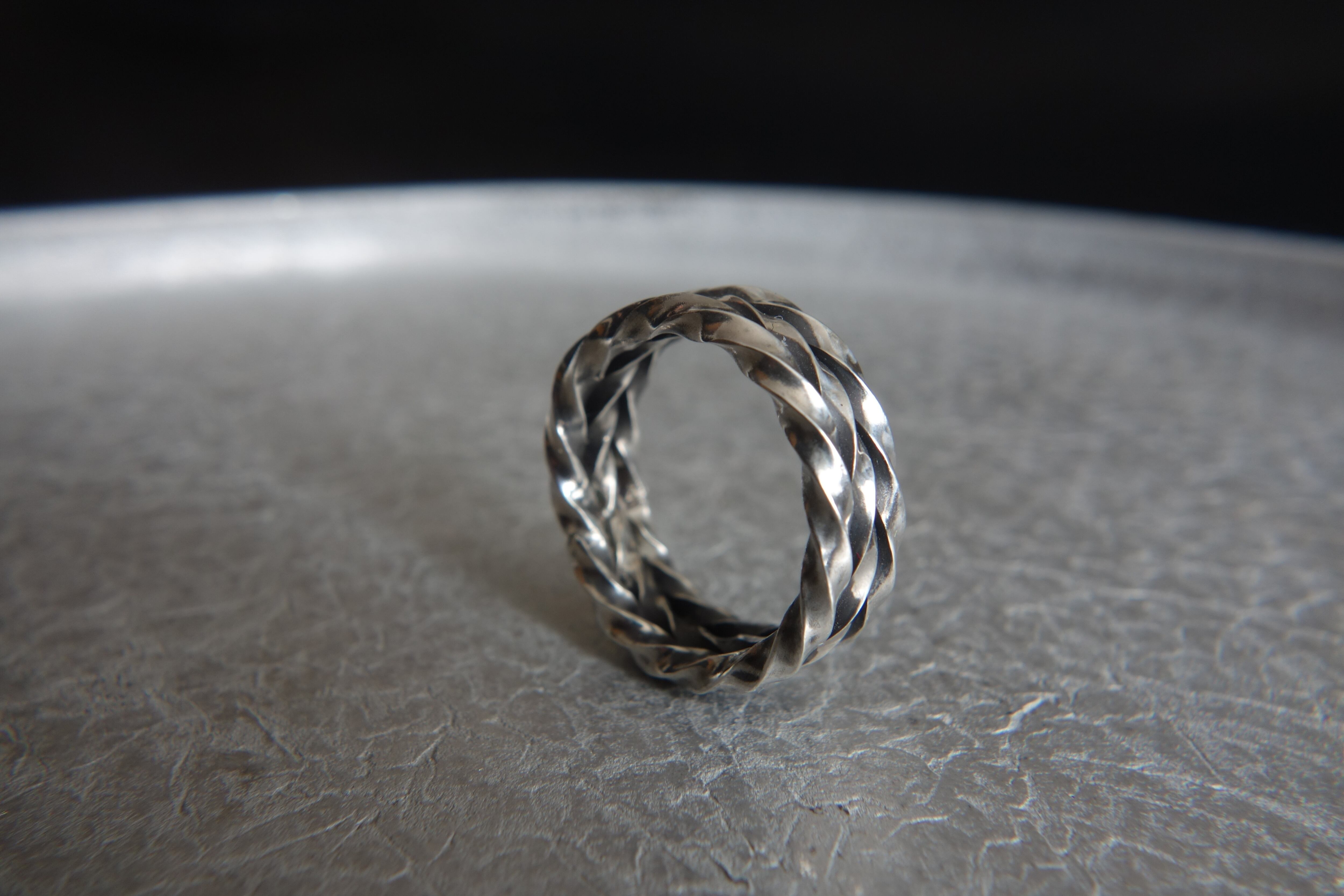 太めの銀線をしようしてあるためボリューム感があります。また、燻しを施すことで立体的で重厚感のあるリングとなっているので、手元の主役としてご着用いただけます。