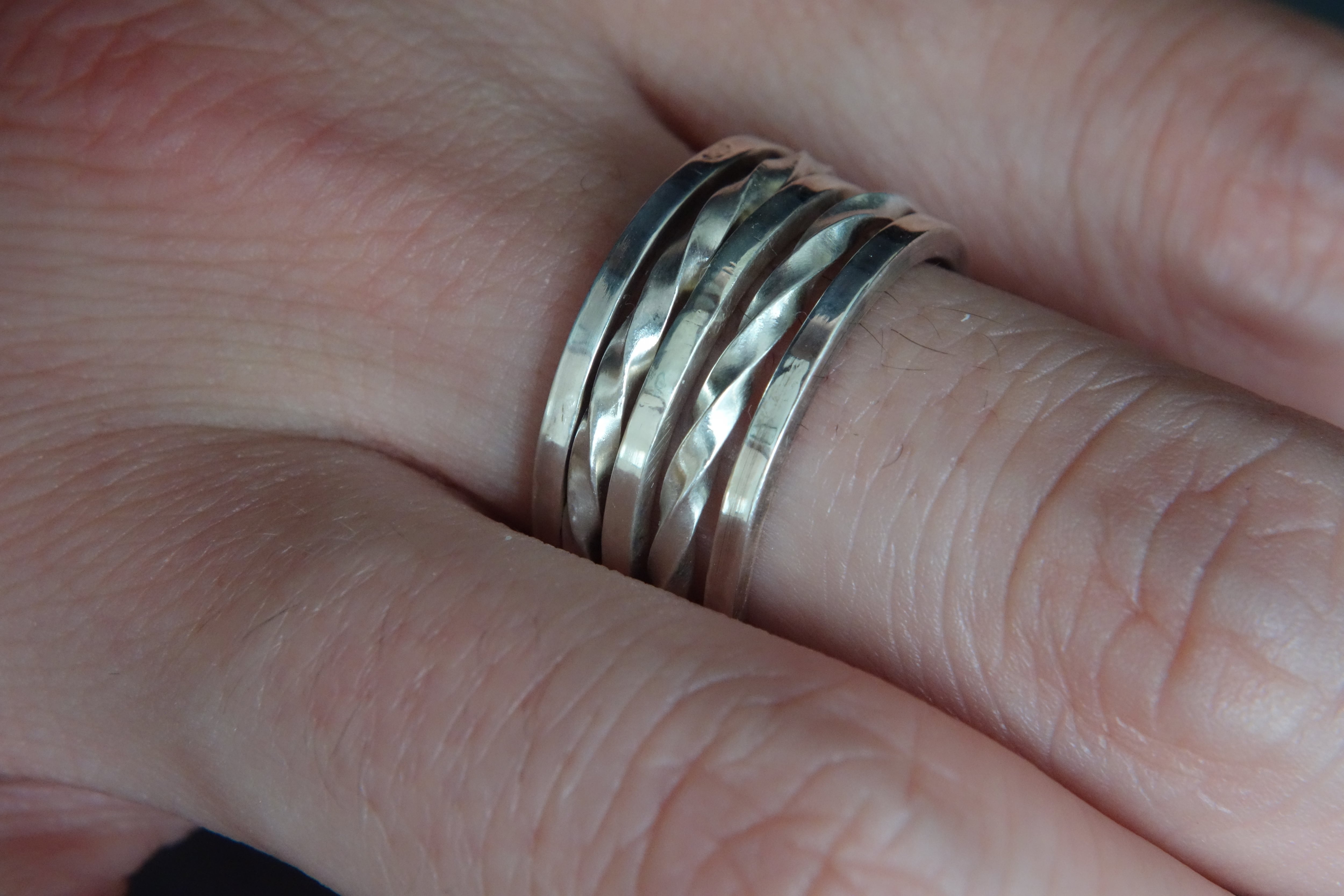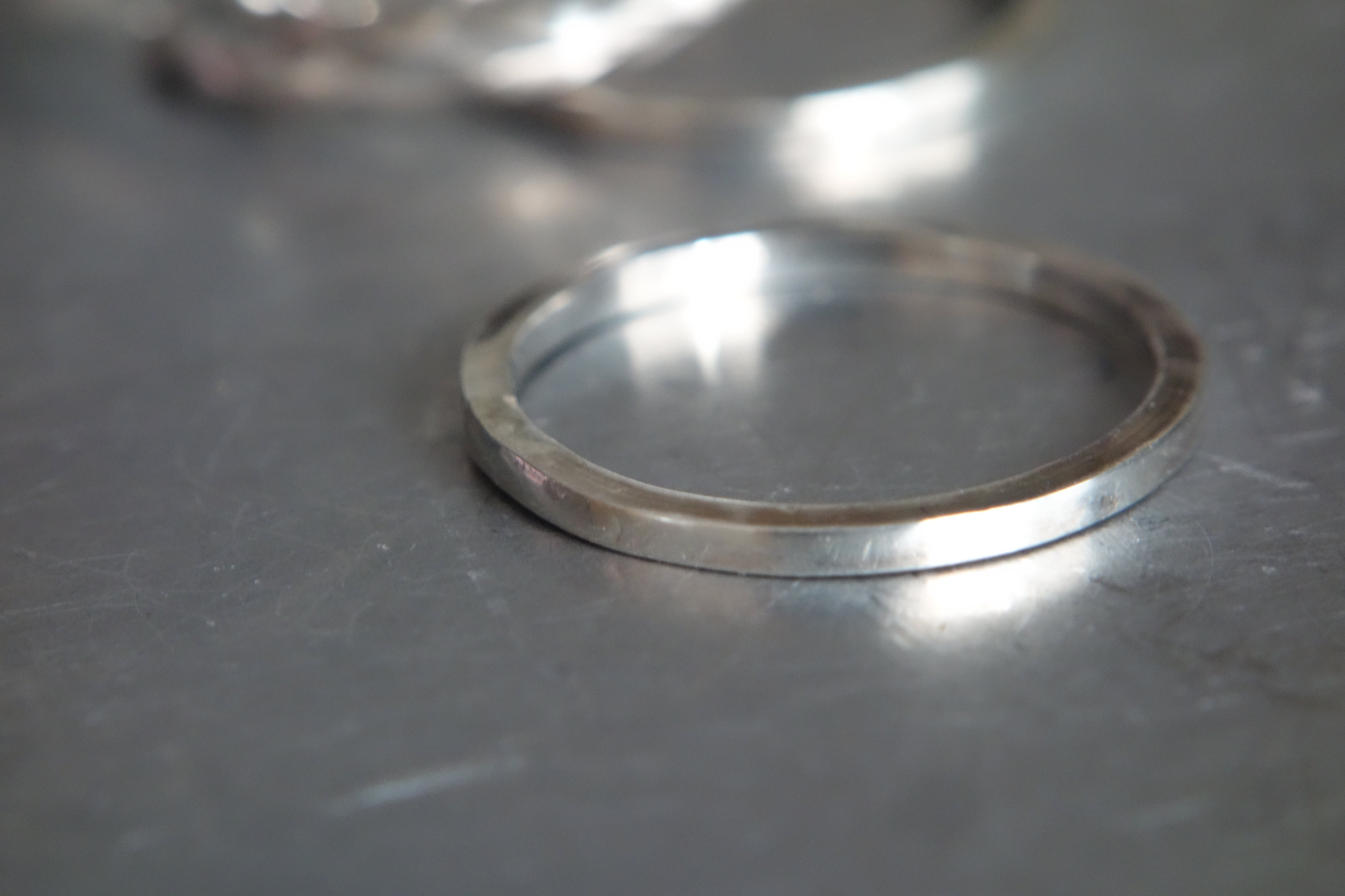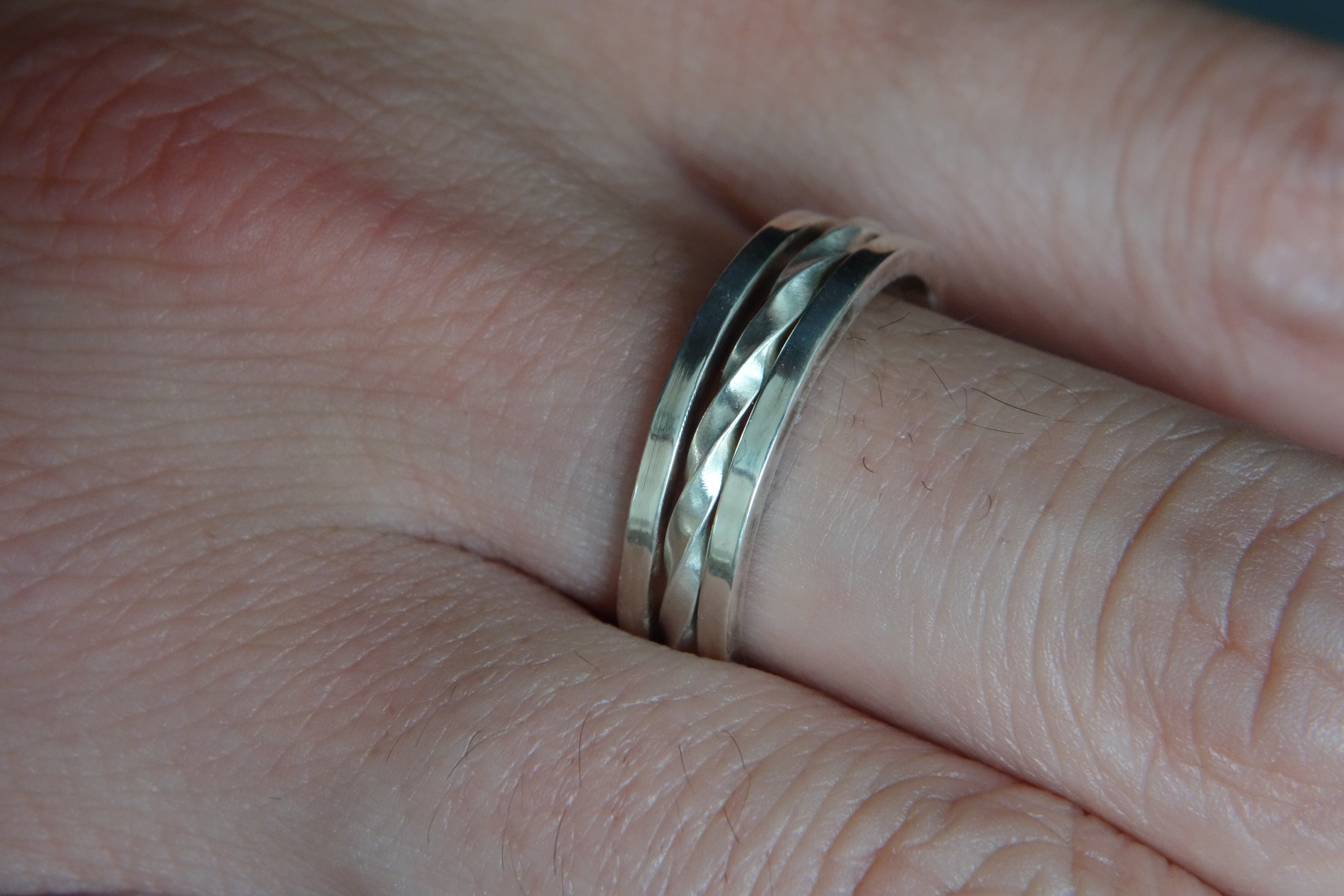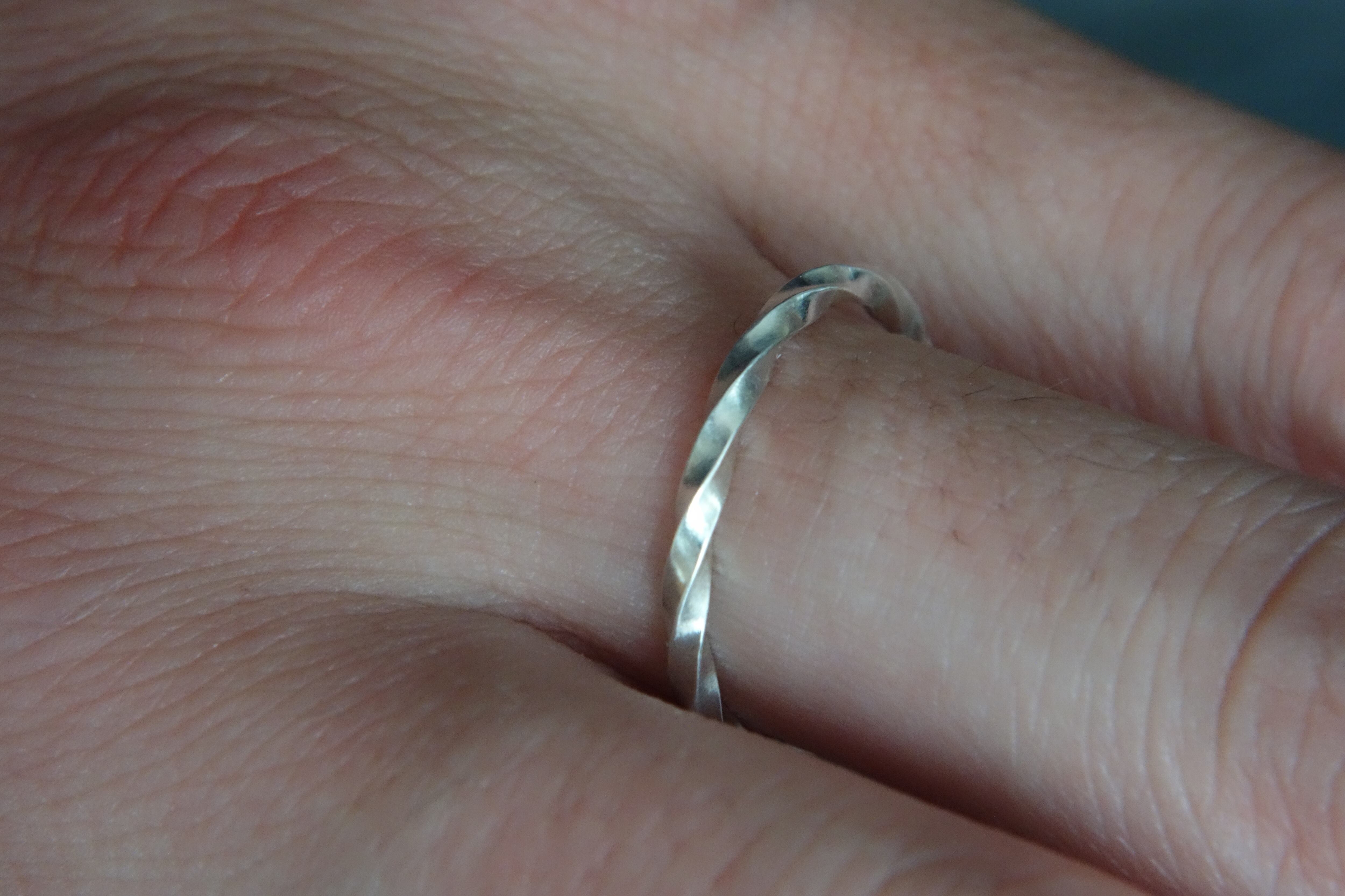 シルバー925製の角銀線を普通に丸めたタイプ(Simple)とひねりを加えて丸めたタイプ(Twist)、二種類の表情の異なるリングの組み合わせを楽しめるリングです。