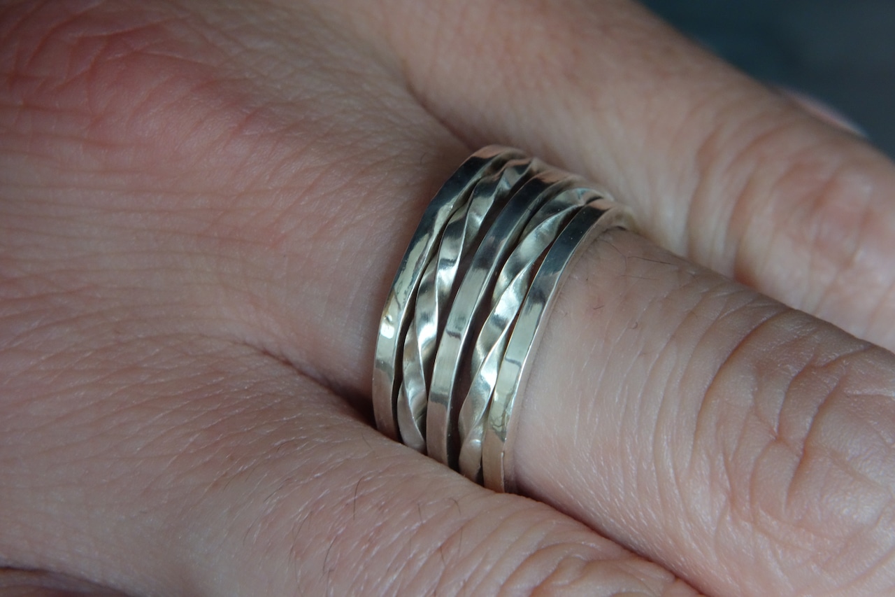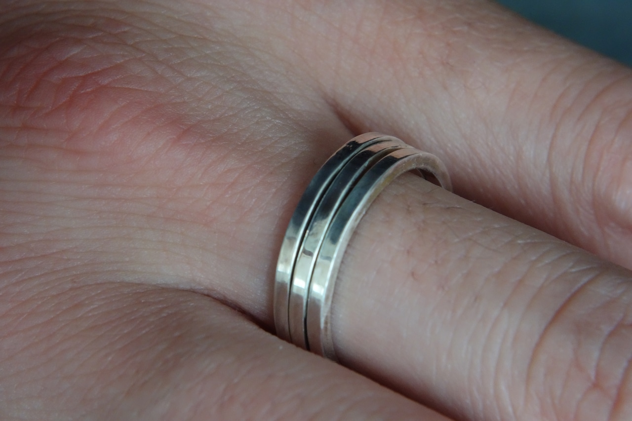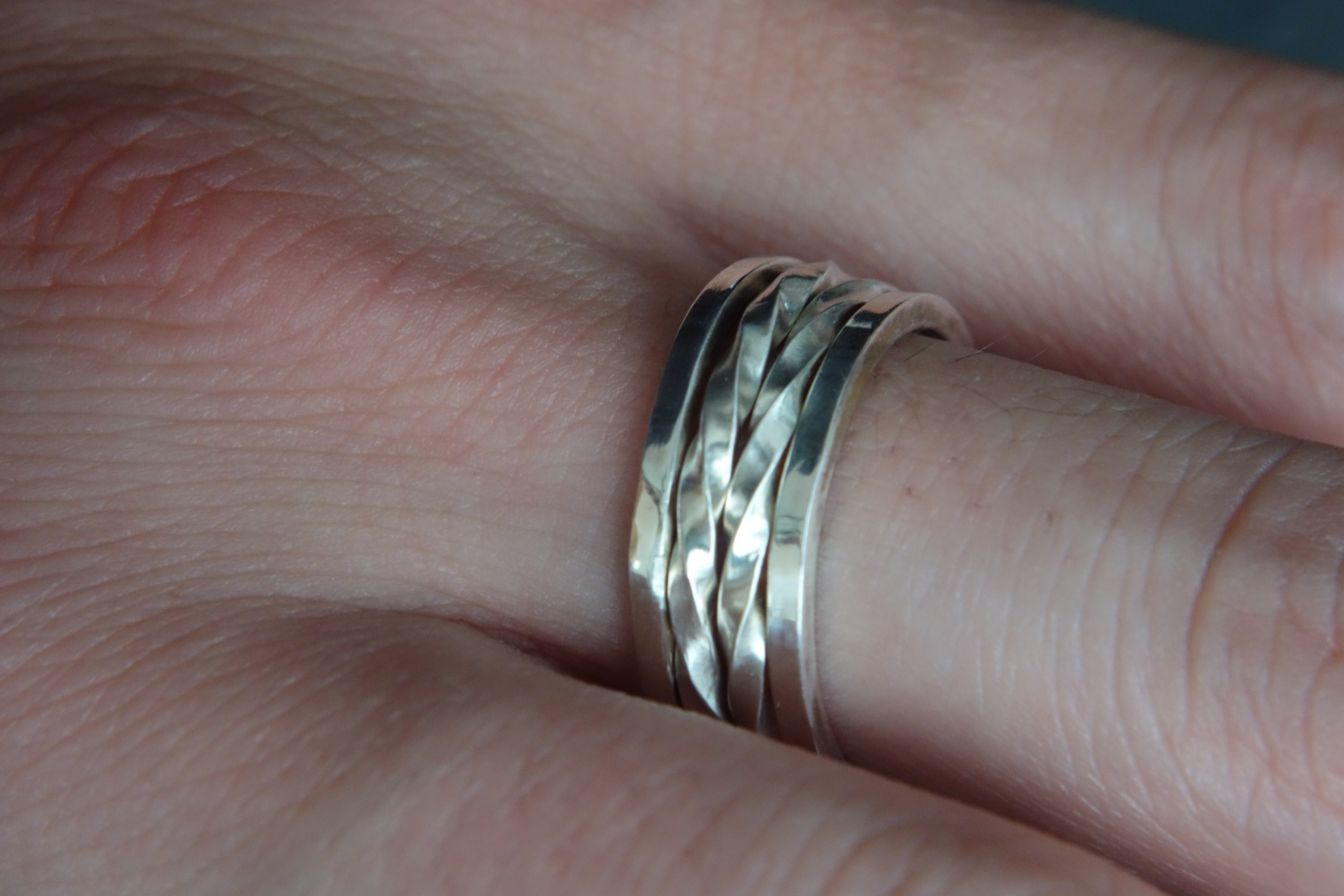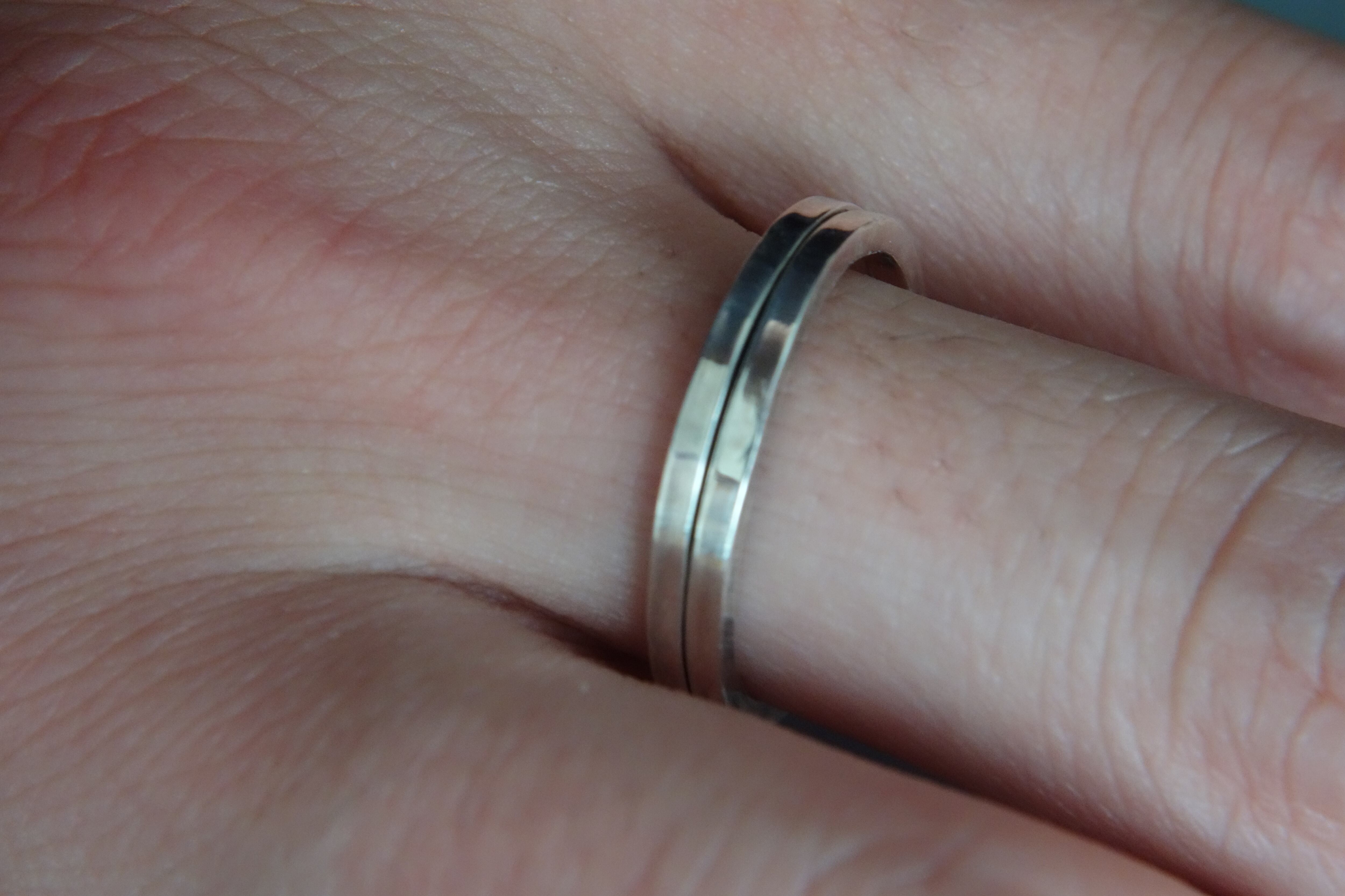 シルバー925製の角銀線を普通に丸めたタイプ(Simple)とひねりを加えて丸めたタイプ(Twist)、二種類の表情の異なるリングの組み合わせを楽しめるリングです。