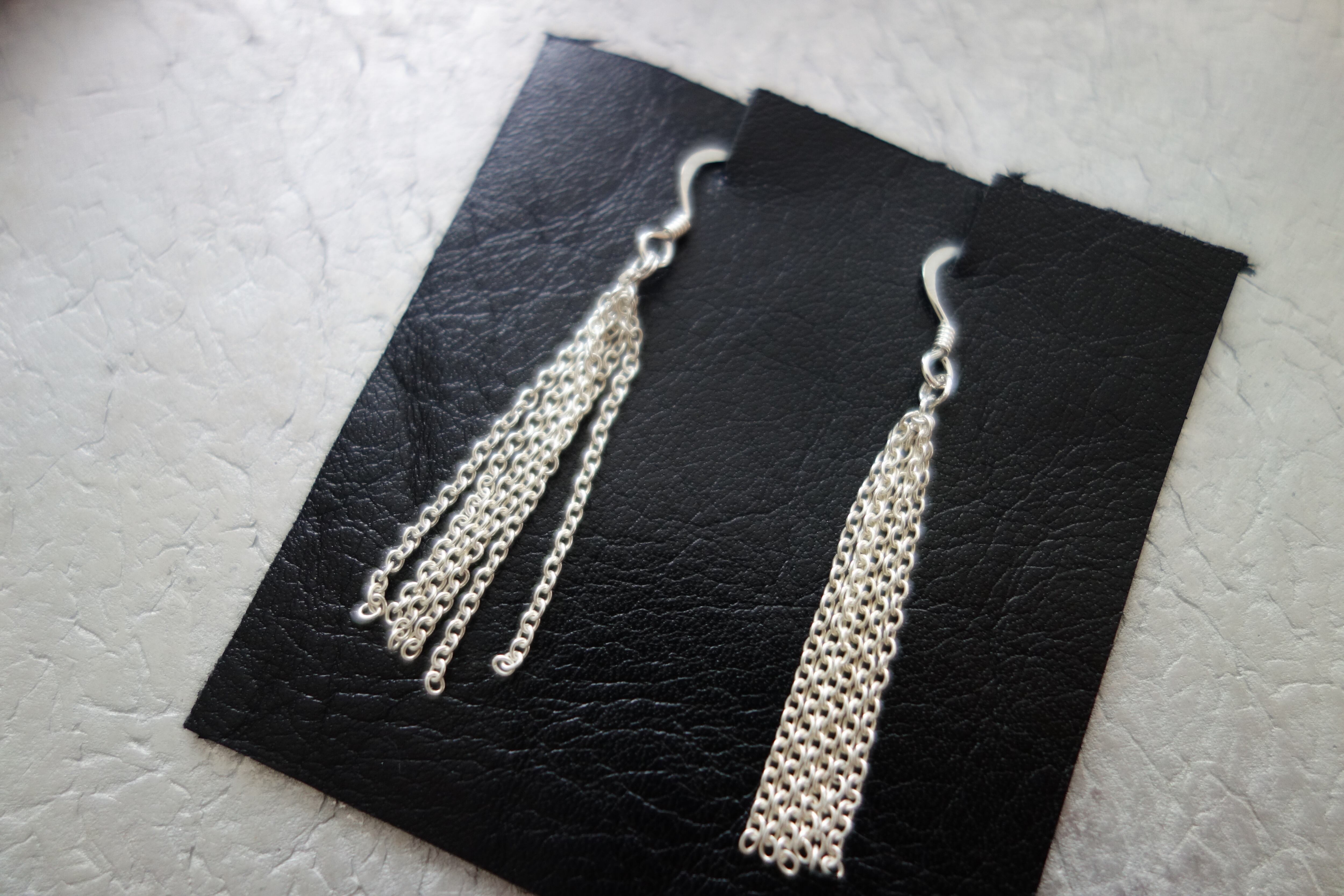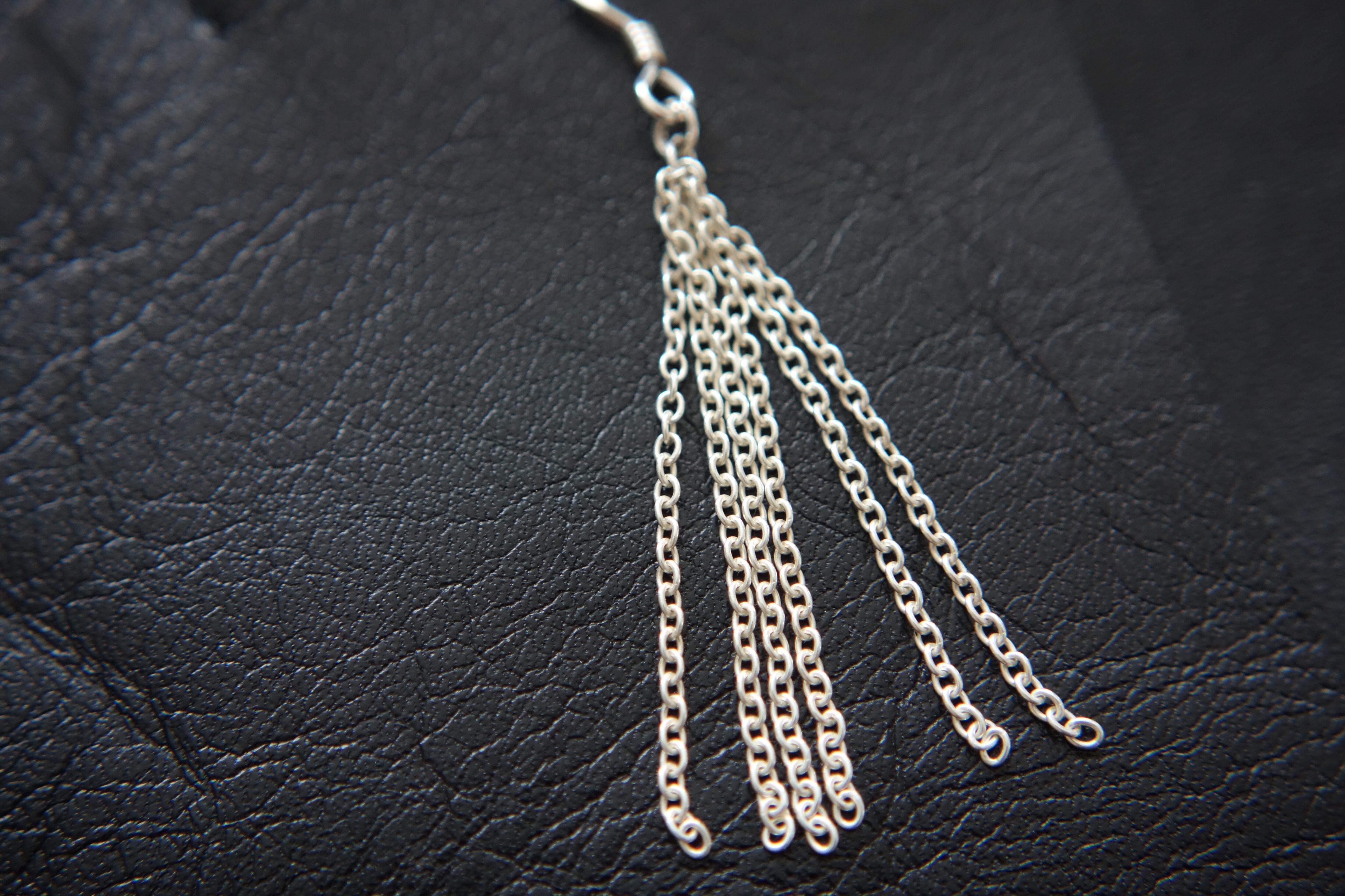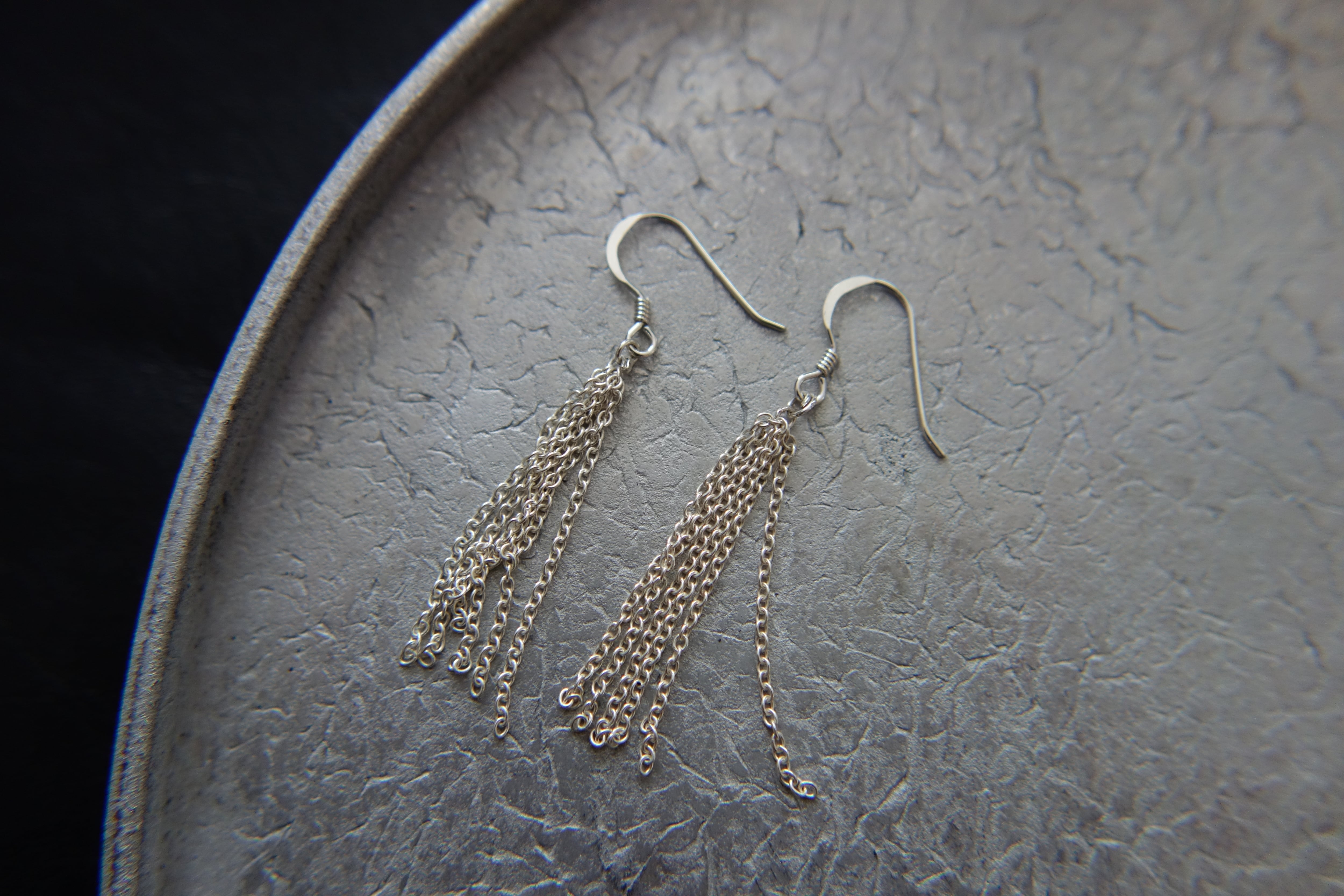 華奢なアズキチェーンを束ねて作ったタッセルのピアスです。