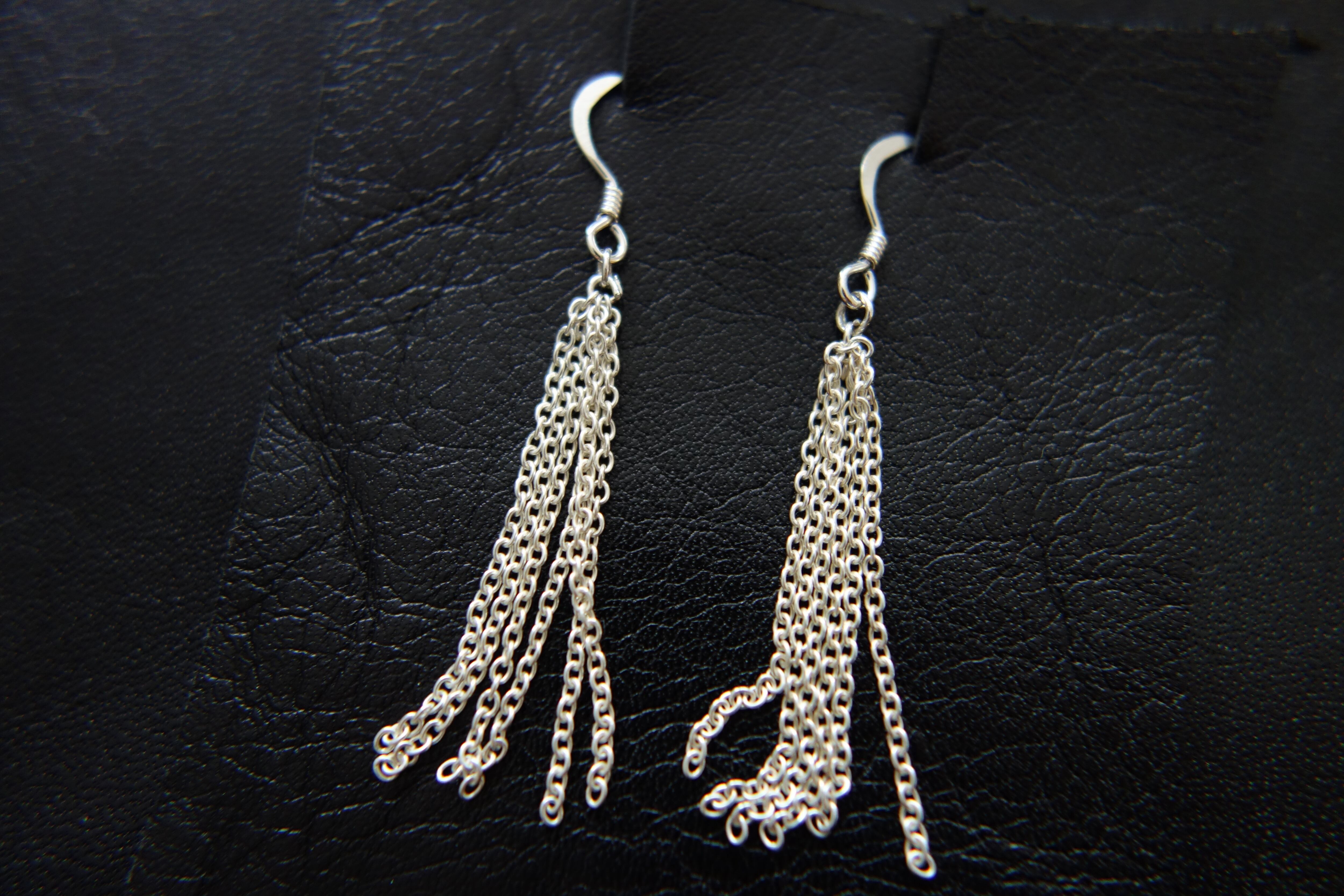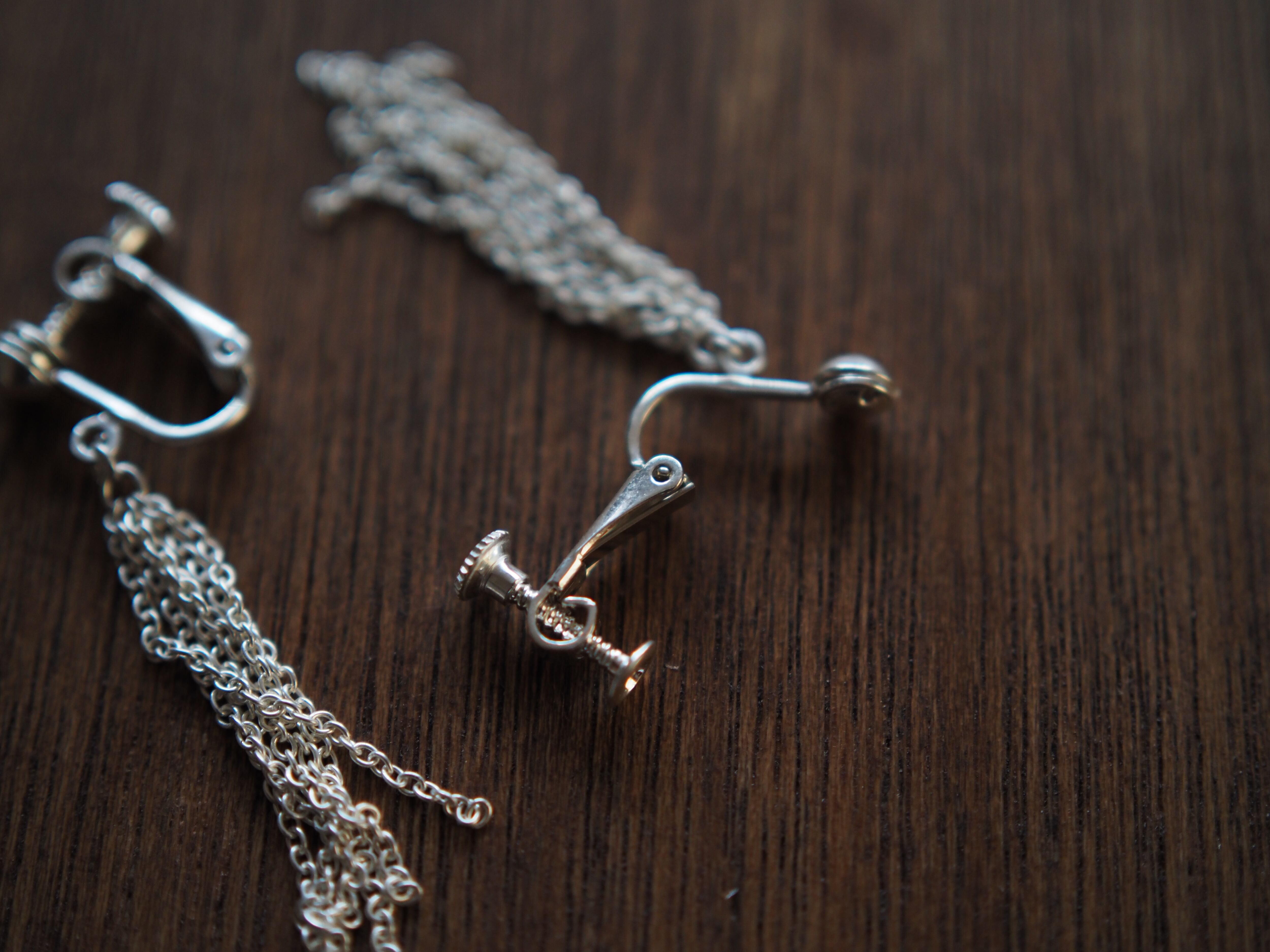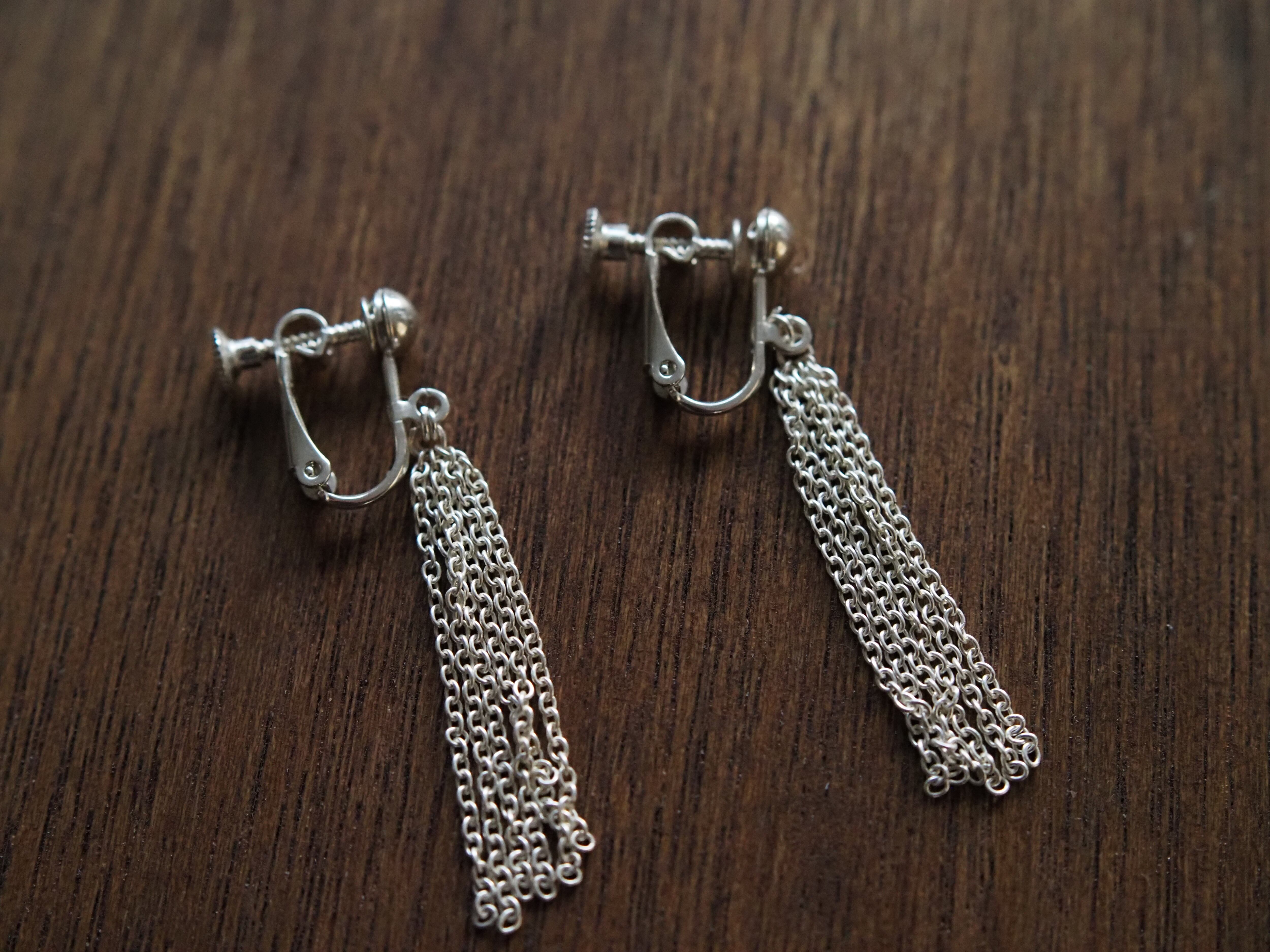 華奢なアズキチェーンを束ねて作ったタッセルのピアスです。