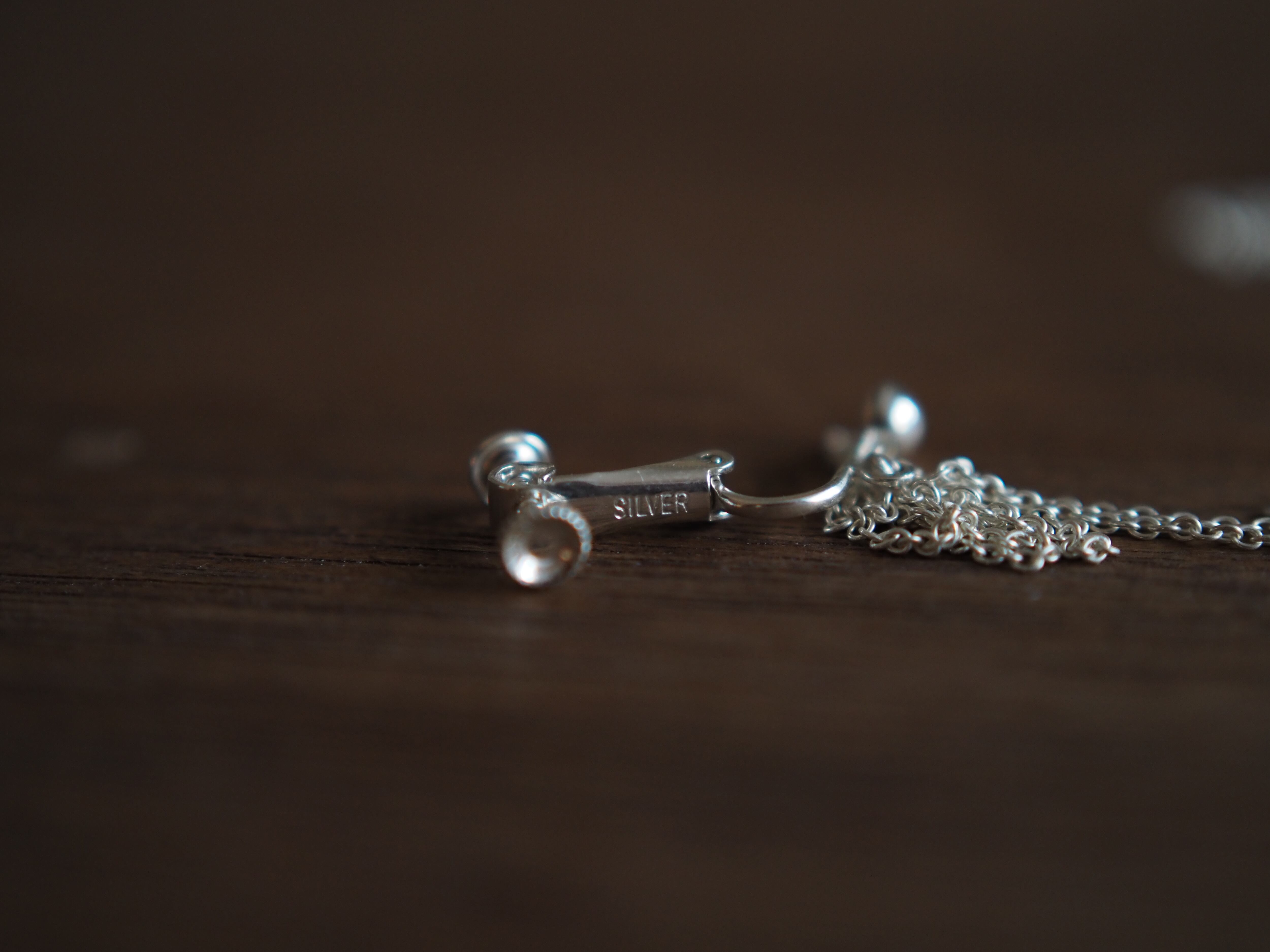 印象的な見た目ながら、シルバーの色味と細身のチェーンで上品な見た目となっております。