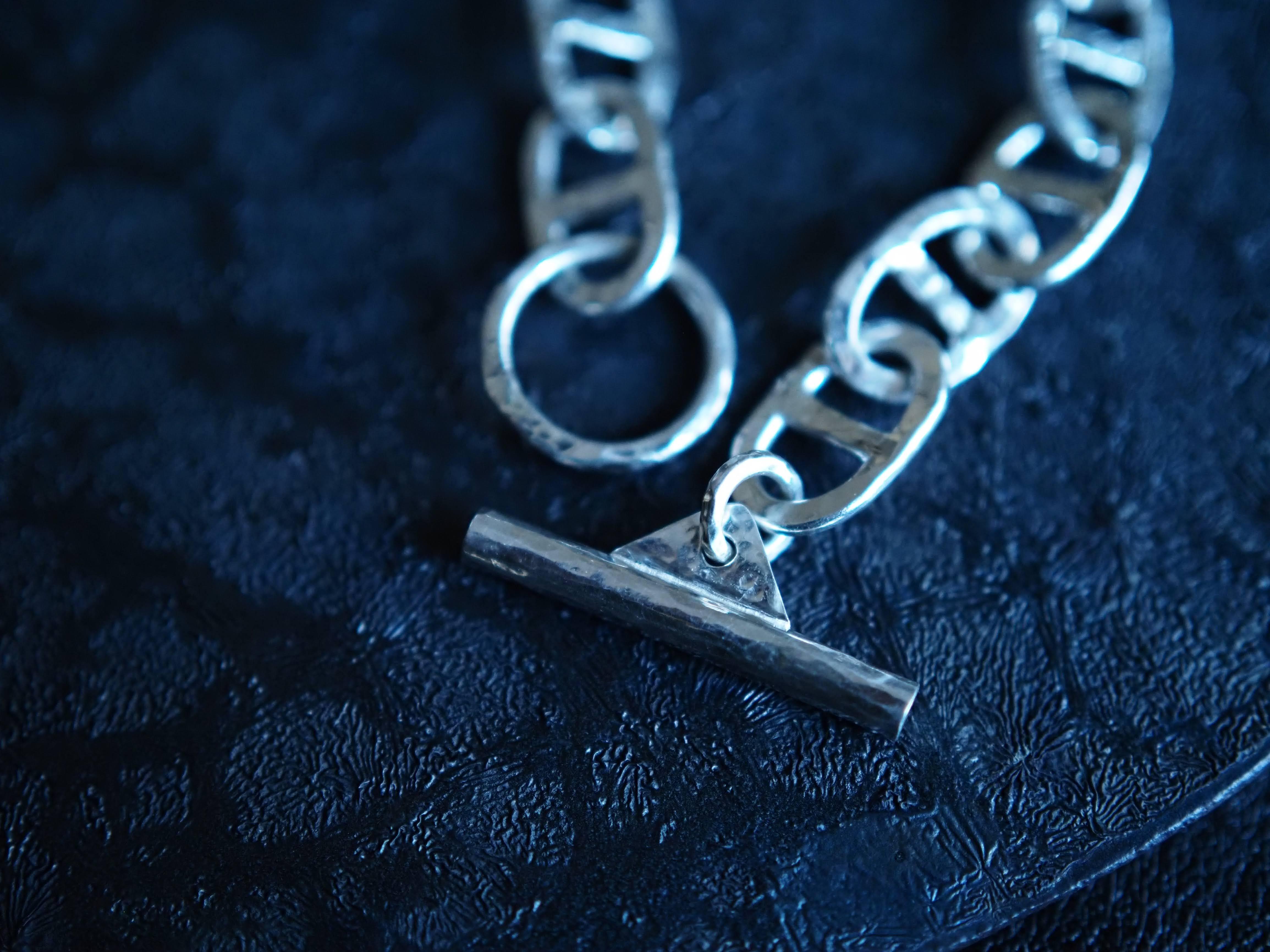 アンカーチェーンのTバーブレスレットを槌目で作成したものになります。